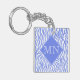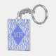NewParkLane - Key Chain, with a funky, denim blue watercolor zebra pattern, and a turned square frame for your monogram.