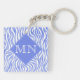 Denim Blue Watercolor Zebra Print | Monogram Key Ring