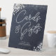 A modern, elegant and chic birthday party Cards and Gifts sign with a denim and diamonds theme. It features a denim background, custom letters for the word "denim" and typography in white. A chic "denim and diamonds" design for a woman on her glam milestone birthday!