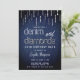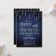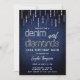 A modern, elegant and chic birthday party invitation with a denim and diamonds theme. It features a denim background, custom letters for the word "denim" and typography in white, as well as elegant rhinestone drips (digital effect) with a beadwork theme. A chic "denim and diamonds" design for a woman on her thirtieth birthday!