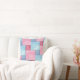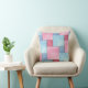 An pretty throw pillow or cushion, with a faux patchwork of pink and blue denim pattern, from a handpainted watercolour design by Judy Adamson. The pattern on the reverse side coordinates but is not identical.