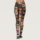This leggings features a denim-textured folk art quilt pattern, blending autumn and country-style charm. The patchwork is composed of square blocks stitched together, each showcasing a distinct motif such as pumpkins, fall leaves (oak and maple), birds, sunflowers, hearts, and stars, all in a rustic primitive Americana style. The warm palette of oranges, reds, and browns contrasts beautifully with dark blue and black backgrounds, adding depth and a cosy, handmade feel. Perfect for farmhouse décor, autumn crafts, Thanksgiving projects, rustic textiles, and country-inspired DIY designs.