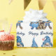 Cute denim watercolor gnomes with a dog and fluffy cat.