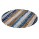 motley Patchwork rug from denim jeans fabric, top view. Recycle old jeans denim floor mat, door mat, area rug. Boho style background. Recycling denim cloth carpet