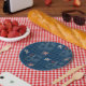 Denim patchwork shower curtain paper plate
