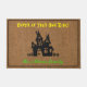 Use during all of October! This is a 24"x36" brownish-gold denim print doormat with "Enter at Your Own Risk" at top in yellow lettering. A whimsical black haunted house in centre and family name, or Jack & Jill personalisation, in lime green script lettering at bottom. Easily change, add to or remove the text using the Template provided. A smaller 18"x24" doormat is also available. Non-slip rubber that won't crack or buckle, this mat resists fading, mould, and mildew and can be easily cleaned with a hose. See "About This Product" at side for more information. Oh, and huge spider hanging at haunted house door.