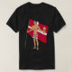 I give wanted to give this a 4 instead of a 5 because these Basic DARK T0shirts run unexpectedly SLIM or Narrow. Which is great if you do not have a potbelly, but I have a paunch. It isn't the shirt's fault that I've got a beer belly. The design and shirt itself is a quality cotton shirt. The color is more of a deep purple, but still a very pretty color. The Basic DARK T-shirts run a bit SLIMMER than the Basic Ts. The neck is a fraction narrower (or seems to be narrower) also. I'm a paunchy middle-aged woman and my neck is 12 inches (31cm) thick and the neckline fell about the same as in the photo of the man, and I had the desire to tug it a bit. So if you're a thick necked man or like loose shirts, be aware these are slimmer shirts. Once I get rid of my lockdown paunch it'll look great. The shirt washed well in cold water with no apparent bleeding. We don't have a dryer, so it hung dry. Did not shrink. Love the colors and the design. The design looks smaller on my shirt than it does on the model on-line. But still, it looks good on the shirt. The printing looks as it does on the model, just the size seems fractionally smaller. Washed garment in cold water, hung dry and design appeared unaffected.