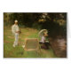 Dennis Miller Bunker Painting at Calcot (1888) by John Singer Sargent is a vintage Victorian Era fine art portrait painting. Dennis Miller Bunker (an American Impressionism painter) is seen here painting in a meadow with Sargent's sister Violet. The woman is sitting next to a creek in Calcot, England. This painting was done in the "en plein air" style which means in the open air, meant to describe paintings created outside.