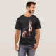 I give wanted to give this a 4 instead of a 5 because these Basic DARK T0shirts run unexpectedly SLIM or Narrow. Which is great if you do not have a potbelly, but I have a paunch. It isn't the shirt's fault that I've got a beer belly. The design and shirt itself is a quality cotton shirt. The color is more of a deep purple, but still a very pretty color. The Basic DARK T-shirts run a bit SLIMMER than the Basic Ts. The neck is a fraction narrower (or seems to be narrower) also. I'm a paunchy middle-aged woman and my neck is 12 inches (31cm) thick and the neckline fell about the same as in the photo of the man, and I had the desire to tug it a bit. So if you're a thick necked man or like loose shirts, be aware these are slimmer shirts. Once I get rid of my lockdown paunch it'll look great. The shirt washed well in cold water with no apparent bleeding. We don't have a dryer, so it hung dry. Did not shrink. Love the colors and the design. The design looks smaller on my shirt than it does on the model on-line. But still, it looks good on the shirt. The printing looks as it does on the model, just the size seems fractionally smaller. Washed garment in cold water, hung dry and design appeared unaffected.