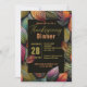 This invitation features a dense, mesmerising tapestry of overlapping autumn leaves in a vibrant mosaic of colours, from fiery orange and crimson to cool teal and mossy green. The front frames your event details within an elegant, dark overlay, where sophisticated gold-toned typography for "Thanksgiving Dinner" adds a luxurious touch. It's a stunning, artful design that perfectly captures the spirit of the season, promising a warm and memorable gathering.