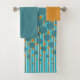 The towel set shows the design density in turquoise and orange. For customisation enquiries please contact info@KBMD3signs.com