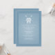 Celebrate your accomplishment with this handsome Dental Health graduation invitation/announcement. The blue background is overlaid with a blue gradient panel featuring a smiling tooth with dental tools.
