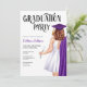 Dental School Graduation Party Invitation. Female Dental Dentist School Graduation Invitation for grad parties celebrating women who just graduated from dentistry school. Celebrate the new DDS in your life with this dentistry school grad party invitation! Featuring a portrait of a curvy light skin woman wearing a white dress, a purple graduation robe draped over her shoulder, and a matching purple graduation cap. She holds dental equipment in her hand. The perfect dentist graduation or dental hygienist graduation Invitation for your daughter, niece, mother, aunt, cousin, or friend who just graduated from dentistry school.