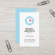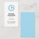 Elegant and minimalistic vertical dentist, orthodontist, dental assistant or clinic business card featuring a tooth logo. The logo has a white tooth with a red heart on a blue circle but can be exchanged for your personal logo by editing in the design tool before ordering. Customisable name, title / business name and contact information on the front. Blue back.