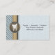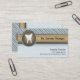 ©2011 Pam's Designs. Represent your family dentistry or orthodontist practice with this classy and professional, dental business card. This card features a white tooth silhouette on a golden seal with a ring border over top of a beveled gold banner. The background is comprised of a vintage blue striped paper beside a light blue with transparent damask gradient background.