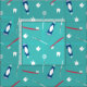 Cute fabric featuring a pattern of dentistry instruments in turquoise, blue, and red.