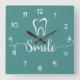 Modern Dentist office wall decor clock in a trendy design including a tooth symbol and smile graphic designed with stylish graphic typography and background colour you can change if you need to. Designed for a dental office to encourage smiling and a positive attitude.