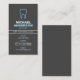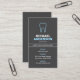 Stylish, dark grey, vertical dentist or dental assistant business card featuring a blue outline of a tooth. Customisable name, title, business name and contact information on the front. Dark grey back. A bold and modern design for a dentist, hygienist or any other dental professional.