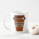This coffee mug displays a brown coffee cup with the text "dentist - powered by coffee." There is a white tooth next to "dentist."