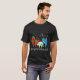 I give wanted to give this a 4 instead of a 5 because these Basic DARK T0shirts run unexpectedly SLIM or Narrow. Which is great if you do not have a potbelly, but I have a paunch. It isn't the shirt's fault that I've got a beer belly. The design and shirt itself is a quality cotton shirt. The color is more of a deep purple, but still a very pretty color. The Basic DARK T-shirts run a bit SLIMMER than the Basic Ts. The neck is a fraction narrower (or seems to be narrower) also. I'm a paunchy middle-aged woman and my neck is 12 inches (31cm) thick and the neckline fell about the same as in the photo of the man, and I had the desire to tug it a bit. So if you're a thick necked man or like loose shirts, be aware these are slimmer shirts. Once I get rid of my lockdown paunch it'll look great. The shirt washed well in cold water with no apparent bleeding. We don't have a dryer, so it hung dry. Did not shrink. Love the colors and the design. The design looks smaller on my shirt than it does on the model on-line. But still, it looks good on the shirt. The printing looks as it does on the model, just the size seems fractionally smaller. Washed garment in cold water, hung dry and design appeared unaffected.