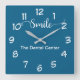 Modern Dentist office waiting room wall decor clock in a trendy design including a smile graphic designed with stylish typography and background color you can change if you need to. Designed for a dental office to encourage smiling and a positive attitude in your waiting area, patient rooms, or main office.