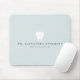 This minimalist and clean dentist's mouse pad features your name and job title in black lettering and a white teeth on a light blue background. Change the background color and personalize it for your needs. You can find matching products at my store.