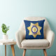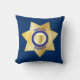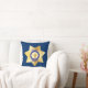 Fun pillow featuring a large Deputy Sheriff gold star badge on the front, on a deep blue background. The rear of the pillow, features a pattern of the same gold star.