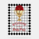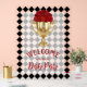 Derby day party Welcome acrylic sign features a gold trophy filled with red roses on a black and white check background with your message in chic lettering. MATCHING items in our collection.