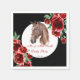 Derby party horse equestrian party personalised napkins template. Simple, classical horse portrait with red roses flowers.