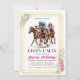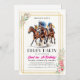 Modern Horse Race Derby Party Invitation with an illustration of a race horse with jockey and striped pattern on the back. All text elements can be changed so this design can be used for other events too: classy equestrian wedding invitation, horse birthday party, derby watch party, horse barn opening and more. Background, colour of the illustration and text colours can be changed using the design tool!