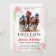 Modern Horse Race Derby Party Invitation with an illustration of a race horse with jockey and striped pattern on the back. All text elements can be changed so this design can be used for other events too: classy equestrian wedding invitation, horse birthday party, derby watch party, horse barn opening and more. Background, colour of the illustration and text colours can be changed using the design tool!