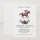 This elegant Derby Party invitation features a classic horse racing illustration with a refined floral accent, perfect for Kentucky Derby celebrations, horse racing events, and stylish spring parties.