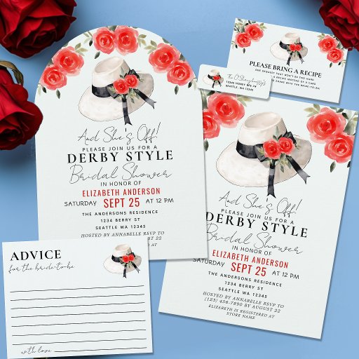 Derby Style Big Hat Rose Bridal Shower Invitation
