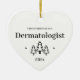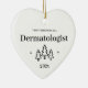 First Christmas as a dermatologist heart ornament. Elegant porcelain ceramic holiday ornaments in white with black lettering. Featuring Christmas trees and stars.