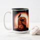 Derpy Halloween Cat by a Tombstone Two-Tone Coffee Mug