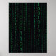 Descending green binary code in 1's and 0's. Wake up Neo.