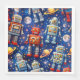 On a journey through the stars with this vibrant galactic robot exploration design set against a deep shimmering nebula filled with twinkling stars and drifting golden asteroids. This artwork features a charming squad of retro style 10 robots the central character with its bold red lightning bolt and bright yellow eyes stands out in high definition detail accompanied by its mechanical companions in classic silver and forest green. The playful sticker style white outlines around the robots give the piece of modern Pop art feel while the cosmic backdrop adds a sense of infinite wonder it's a perfect blend of nostalgic mechanical charm and the vast