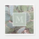 Desert Custom Monogram paper napkins, with a green Prickly Pear Cactus image and a green and white border. With white customisable text, you can add your own initial. Great for adding a cute touch of the desert southwest to your entertaining needs!