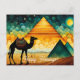 Desert camel with Egyptian pyramids postcard. Easily customise the message for your needs.