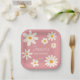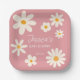 Desert daisy boho pink retro baby shower custom name personalised party paper plates.