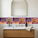 Achieve a look of architectural party glamour with our Mirror Lattice Tile. Featuring elegant gold geometric lines cascading down a vibrant purple to soft peach ombre background, this design evokes the glamour of the 1920s. Scattered crystal accents add a touch of sparkle and luxury, making this tile a perfect statement piece for any space. Whether you're adding a unique flair to your kitchen backsplash, a bathroom accent wall, or a decorative art piece, this tile brings timeless sophistication and a hint of dazzling charm to your decor. Designed for dopamine decor kitchens and party room interiors, it creates a seamless, joyful backsplash or a designer coaster set that catches the light and the attention.