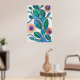 This poster comes in a choice of large or small sizes. Desert flower is a beautiful watercolour and pen abstract artwork of a plant in flower. It's in green and blue hues, with apricot and pink flowers on a gray and white background. The doodle style artwork is original and only available from The Art of Being Beth.