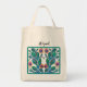 This useful grocery tote bag, Desert Flower, is decorated on both sides with beautiful watercolour and pen abstract artwork of two plants in flower. They are mirror images of each other. You can personalize the front with your name. The design is in green and blue hues, with apricot and pink flowers on a gray and white background. The doodle style artwork is original and only available from The Art of Being Beth.
