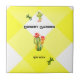 Yellow and White chequerboard, diagonal pattern background, displays 3 variety of desert plants. 'Desert Garden' and other text can be replaced.