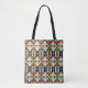 This design features a bold, repeating geometric pattern inspired by Southwest and modern tribal motifs. Symmetrical shapes in warm earth tones—rust, ochre, turquoise, and black—create a strong sense of rhythm and balance.