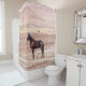 A photograph of a horse in a desert landscape standing, listening, watching for what may be happening in the distance. The horse was photographed in a southwestern state of the USA.
