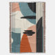 An abstract landscape of a desert scene with lines and shapes in shades of brown, orange, turquoise, beige, tan, and black.