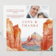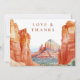 These elegant wedding thank you cards, featuring a desert mountain watercolor scene, can be personalized with your thank you message and special photo. Designed by Thisisnotme©