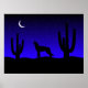 Stunning digital art featuring a nighttime desert scene with cacti and a coyote howling at the moon.