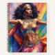 A watercolor capturing the essence of belly dance. The dark-skinned dancer shines with a rainbow costume that reflects the joy and beauty of the dance.